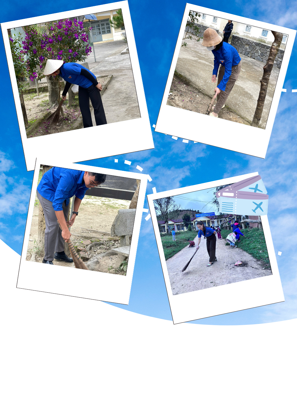Vệ sinh môi trường: Quét dọn, thu gom rác thải, xử lý túi nilon và làm sạch toàn bộ khuôn viên nhà trường.